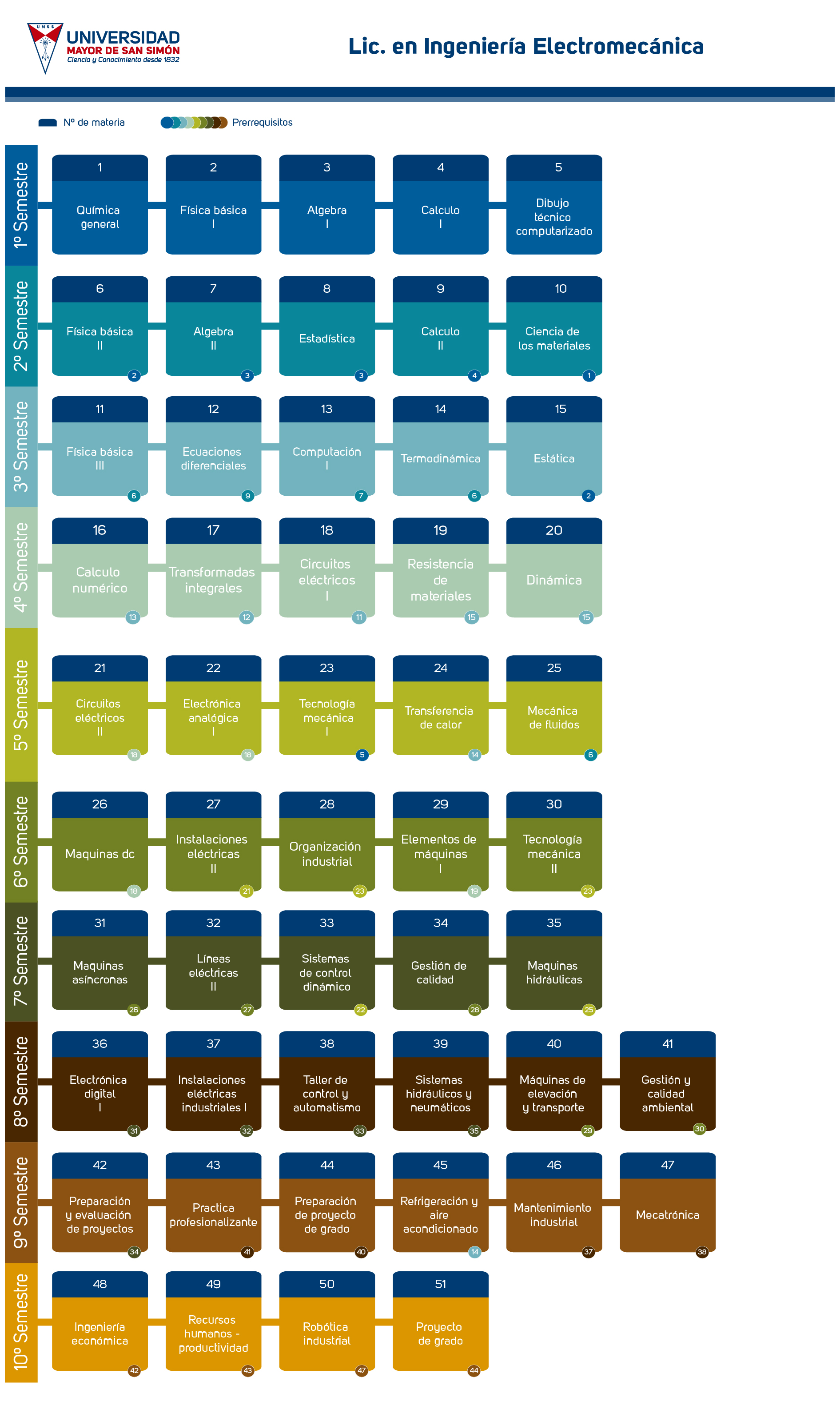 El Plan de Estudios de Ingeniería Electromecánica se imparte semestralmente durante 10 semestres equivalentes a 5 años académicos, comprendiendo un total de 51 materias organizadas por áreas de conocimiento con enfoque teórico-práctico. Su estructura es generalista y semiflexible.